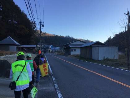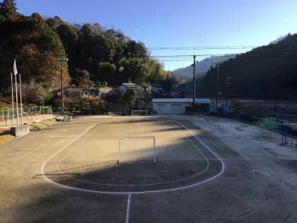 おはようございます。今朝は空気がとても冷たいですが空は快晴です。山の間から太陽の光が差し込み、運動場が明るくなってきました。