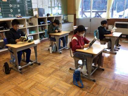 先週末にマラソン大会が終わり、日課がもとに戻ったため、ゆっくりと朝の時間を過ごしています。5・6年生は、読書をしています。ひまわり学級では、漢字の練習に取り組んでいます。