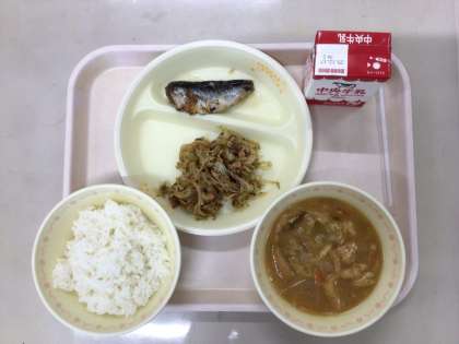 今日の給食は、いわしのしょうが煮、切干し大根のソース炒め、ちゃんこ汁です。たべまるのおすすめ【ちゃんこ汁】。作り方は、「豊田市クックパッド公式キッチン」で見られます。