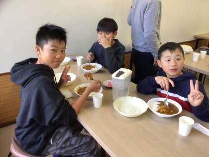 昼食は、カレーライス食べ放題です。楽しみにしていたお昼ご飯。子どもたちは、おかわりしておなかいっぱいに食べました。