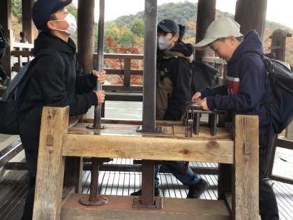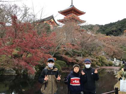 12/12(金)修学旅行19(清水寺) 公開日 2025/12/12 更新日 2025/12/12 各学年から 清水寺へ到着です。お世話になったタクシーの運転手さんに御礼を伝えてお別れをしました。清水寺へ向かう坂には観光客がたくさんいて、人と人の間をすり抜けながら歩きました。「今年の漢字」の発表の日ということもあり奥の院までは行けませんでしたが、音羽の滝へ行き、ご利益をいただきに行きました。
