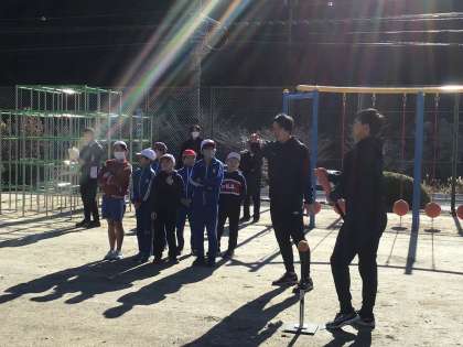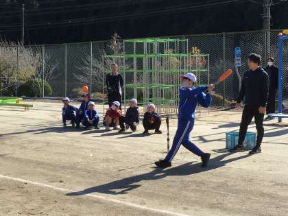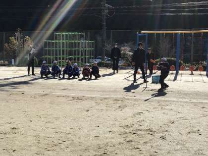 12/16(火)投げ方教室2 公開日 2025/12/16 更新日 2025/12/16 各学年から 次にボールを打つ練習をしました。スイングがうまい子も多く、上手にボールの芯をとらえて打っていました。この後、Tバッティングを利用したTボールゲームに取り組むので、ルールを教えてもらいました。