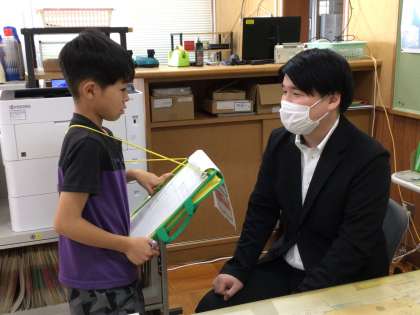 あさがお学級では、円山学習でお仕事インタビューをしています。今日は事務さんに仕事のことについて聞いています。