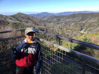 今日は、総合的な学習の時間の授業で、ひまわり学級が天狗岩の見学へ行きました。天狗岩は御蔵学区の大切な名所です。どんな素敵な場所か見てみたいと思い見学へ行きました。学校から40分ほど歩いてふもとまで行き、ふもとから20分ほど登り、天狗岩まで行くことができました。山道は葉っぱや枝がたくさん落ちていて険しい道のりでしたが、さすが山の子すいすい登っていきました。天狗岩にある展望台から見える景色がとてもきれいでした。