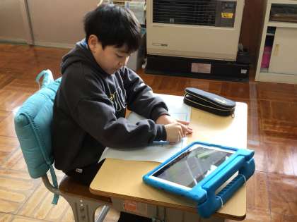 1/14(水)授業に様子(4年生) 公開日 2026/01/14 更新日 2026/01/14 各学年から 4年生は、社会で都道府県クイズを作っています。学習用タブレットを使って下書きをしています。 あさがお学級は、円山学習でお仕事インタビューの振り返りを担任の先生と一緒に取り組んでいます。