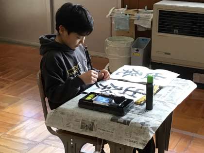 4年生は、書写で「出発」の字を練習しています。力を入れて書いていると、「出」がつい大きくなってしまうこともあるようです。