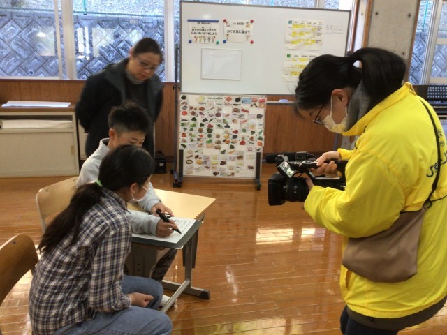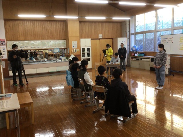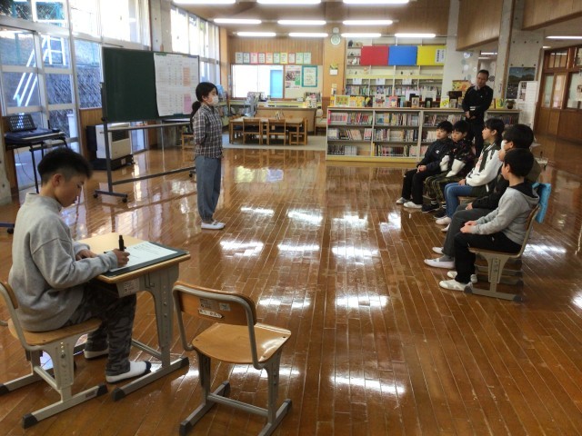 今日のスピーチ集会では、代表児童が「無人島へ持って行くなら…」という題でスピーチしました。代表児童は携帯電話を持って行きたいことと理由について話しました。この題も子どもたちにとって比較的考えやすかったようで質問が多く出ました。ひまわりネットワークの取材でカメラが向けられていたため、最初は緊張気味でしたが、みんなで話をしているうちに表情が和やかになってきました。