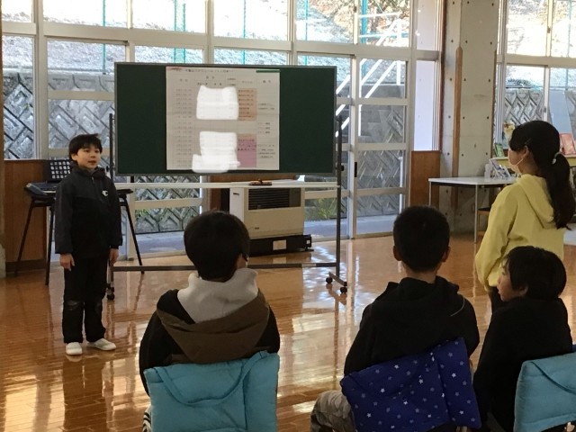 今日のスピーチ集会では、「U SJの思い出」について児童がスピーチしました。どうしてジェットコースターが好きなのかや他の遊園地ならどこへ行ってみたいか等の質問が出ました。ザ・フライング・ダイナソーの乗り物について、知らない子がイメージががもてるように身振り手振りで体を使って伝えた場面もありました。最後にもう一度行ったスピーチは、内容が膨らんだよりわかりやすいスピーチになりました。
