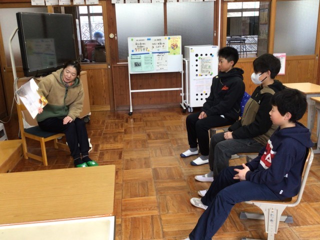 今朝のさわやかタイムは読み聞かせです。4年生が「教室は間違ってよいところだ」「ゆきのうえ ゆきのした」、5年生は「おかしなゆき ふしぎなこおり」、6年生は「かさじぞう」「花のかみかざり」を読んでいただきました。冬にちなんだお話を選んでいただき、子どもたちは夢中になって聴いていました。