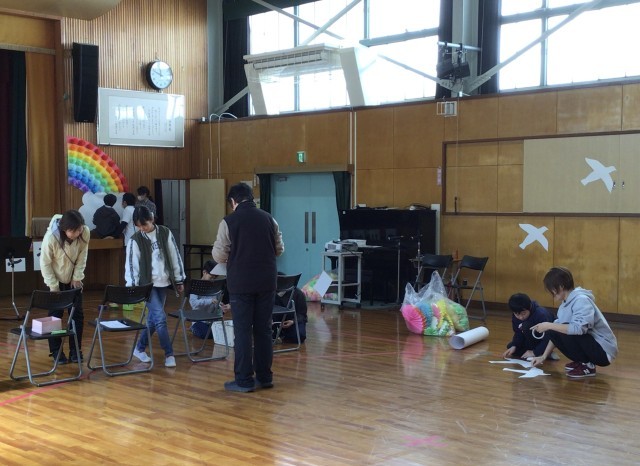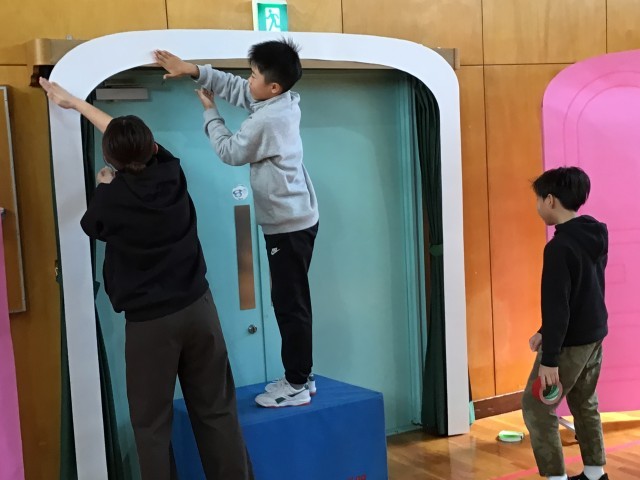 明日の6年生を送る会に向けて、集会室の飾り付けを児童全員で行っています。6年生は送られる側ですが、4・5年生の人数が少ないので、6年生も一緒に準備をしています。こうやっていっしょに活動ができるのもあと少しです。そうやって考えると、6年生といっしょに過ごせる貴重な時間ですね。