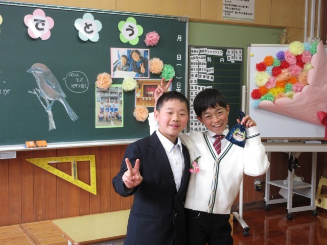 最後の学活では、1年間を振り返ったり担任の先生へお礼を伝えたりしました。担任の先生からも最後のメッセージを贈りました。