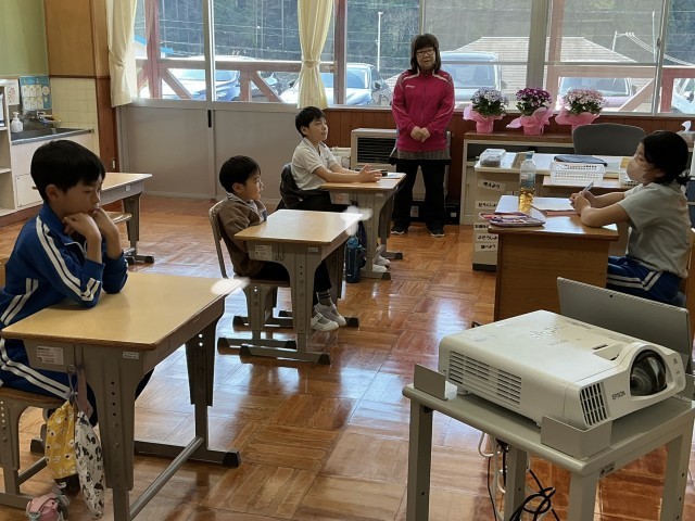 おはようございます。今朝は青空が広がり、気持ちのよい朝です。1年生の児童も元気に登行し、朝の支度をてきぱきと行っていました。今朝のさわやかタイムは、通学団会です。1年生が入って、いろいろと確認をしていました。