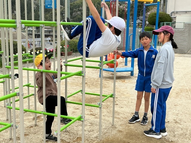 今日は5時間授業のため、給食後にみくらタイム(長放課)があります。今日のみくらタイムは、みんな外へ出て遊びました。最初は、1年生とペアで遊んだり少人数で遊んだりしていましたが、「みんなで遊ぼう」ということになり、全員で鬼ごっこをして遊びました。運動場を駆け回り、逃げ回っていたのでみんな顔を真っ赤にして息を切らしながら楽しく遊びました。
