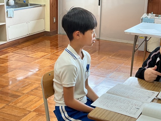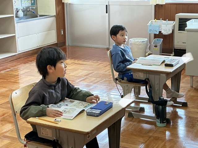 授業の様子です。5•6年生は、道徳「ふつうってどういうこと?」、あさがお学級は、算数「長さ」について、1年生は国語「たのしくかこう」に取り組んでいます。落ち着いて取り組んでいます。