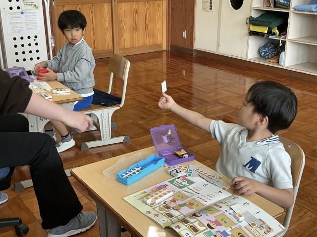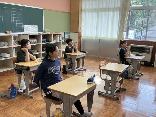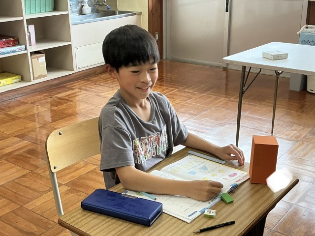 あさがお学級では、算数の授業ではこの形について学んでいました。5•6年生では、学級目標について話し合っていました。1年生は、算数で数の勉強をしていました。楽しく取り組んでいました。