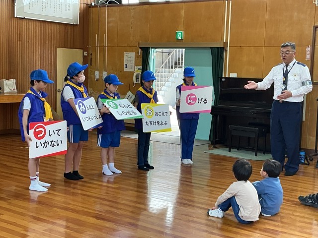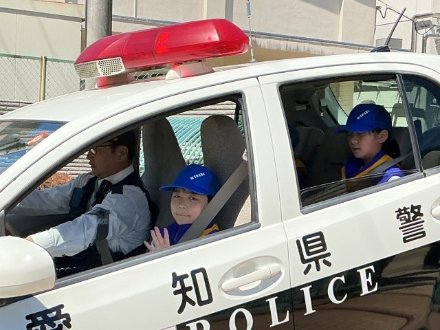 今日は、子どもたち全員で防犯啓発活動を行いました。パトカーに乗せていただき、詐欺に合わないようになどの言葉を地域の方に伝わるようにスピーカーを通して伝えました。出発前には、自分たちも安全に過ごせるように、「つみきおに」、ついていかない、みんなといつもいっしょ、きちんと知らせる、おおごえで助けを呼ぶ、にげる、の意識を高めるように、声を出して言いました。