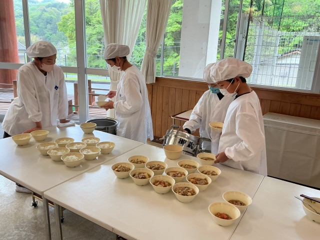 今日の給食は、肉じゃが、青菜あえ、厚焼きたまご、ご飯、牛乳です。今日の青菜あえには、キャベツ、もやし、にんじん、菜めし粉、肉じゃがには、玉ねぎしらたき、にんじん、さやいんげんと多くの野菜が入っています。