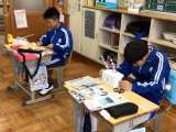 4年生は、算数(がい数)の確認テストに取り組んでいます。あさがお学級では、書写...