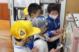 火災を想定して避難訓練を行いました。口元をハンカチで押さえたり、走らず安全に避難...