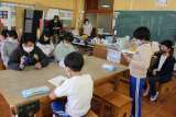 学校探検をしながら、出会った先生たちに自己紹介カードを渡しました。それぞれの教室...