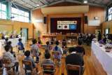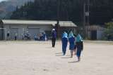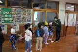 火災を想定して避難訓練と煙道体験を行いました。口元をハンカチで押さえたり、走らず...