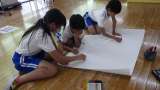 運動会に向けて、赤白に分かれてスローガンをかきました。