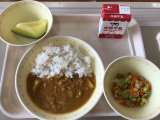 今日の給食は、カレーライス、カラフルソテー、メロン、牛乳です。メロンは生です。...