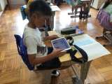 4年生は、外国語活動でアルファベットを確認しながら、英単語を書くことに取り組ん...