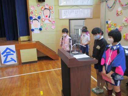 1年生の入学を祝い、1年生を迎える会が行われました。