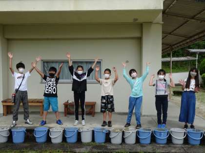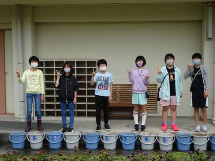 バケツでミネアサヒを! 公開日 2021/05/21 更新日 2021/05/21 お知らせ 5・6年生の城ケ峰学習で、苗の成長をより詳しく見ることができるようにするために、学校でバケツ稲の育成に挑戦します。 バケツの土づくりをして手植えの準備を行いました。バケツに入っている水分を含んだ土はとても重く、手で耕すのは大変でしたが、子ども達はへこたれずにがんばりました。 バケツへの手植えは後日行う予定です。体育館の東側に並べてありますので、来校された際にはぜひご覧ください。