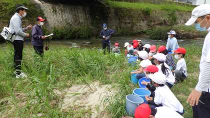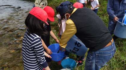 生きたアユの感触や動きに驚きました。「大きくなってまた会いにきてね」と気持ちを込めて放流することができました。