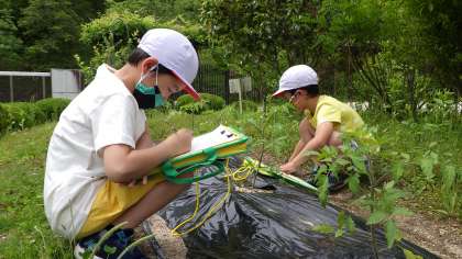 1年生は朝顔、2年生はトマト・にんじん・ふうせんかずらの観察をしました。
