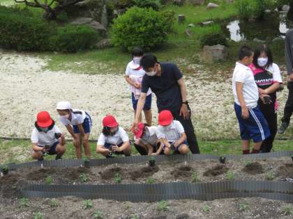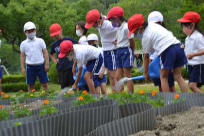 全校児童で学校の花壇に花を植えました。「元気に育ってね。」と願い込めて大切に植え、水やりまで丁寧にできました。