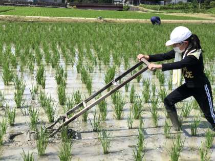 美味しいミネアサヒを作るために、手作業による田んぼの草取りを行いました。