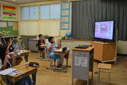 歯磨きの正しい方法を再確認しただけでなく、デンタルフロスの使い方を楽しく学ぶことができました。学んだ内容を、夏休み前に、1〜4年生に報告する予定です。