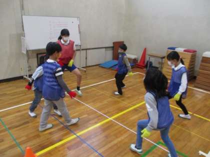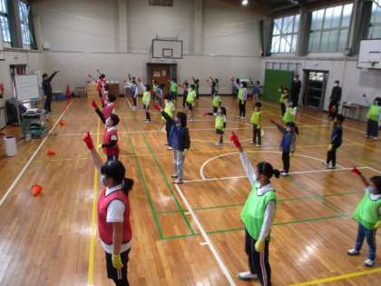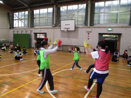 運動会に向けてダンス練習に取り組んでいます。高学年を中心とした班での教え合いを通して動きをそろえてダンスすることができるようになってきました。