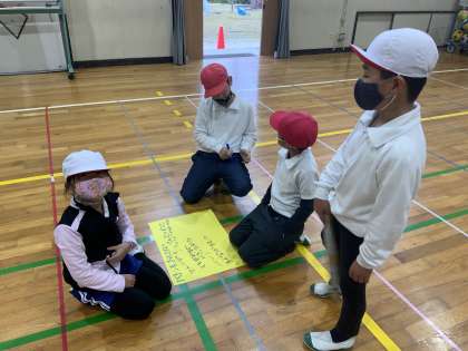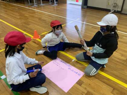 自分達のチームの記録を少しでも短かくするために、「バトンパスでバトンを落とさないためのひっさつわざ」を各チームで話し合いました。