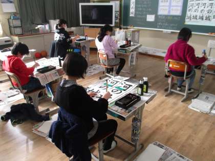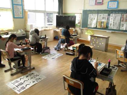 冬休み後集会に引き続き、各教室で書き初め大会を行いました。これまで授業や家庭でたくさん練習してきた努力が実り、どの子も力強く堂々とした字を書くことができました。1月12日(水)〜14日(金)の期間、体育館に書き初め作品を展示してありますので、ご都合がつけば是非ご覧ください。