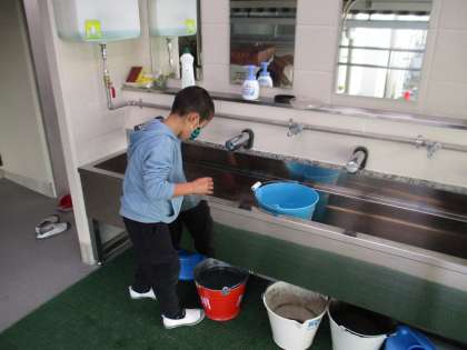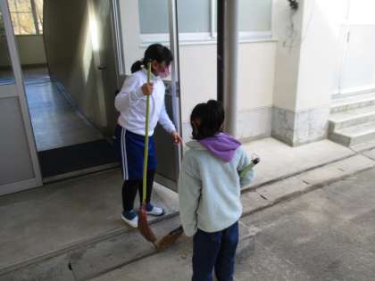 本校では、異学年交流の一環として縦割り班のメンバーで掃除を行っています。寒くなってきましたが、どの子も一生懸命に掃除に取り組んでくれています。