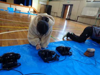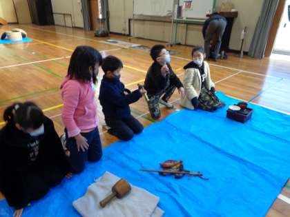 豊田市郷土資料館による「昔の道具出前授業」を体育館で行いました。職員の方が持ってきた昔の道具に興味津々の3年生の子どもたち。昔のはかりや黒電話を見て「どうやって使うんだろう?」と悩んでいました。大人にとっては「懐かしい」物が、子どもたちにとっては逆に「新しい」物に感じられたようですね。