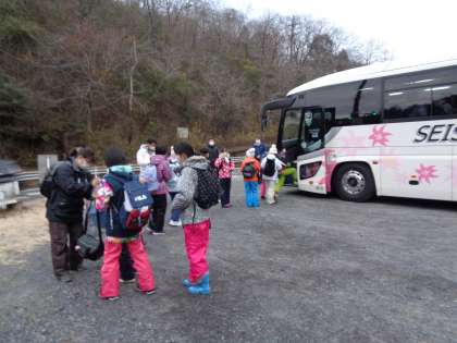 今日(1月20日)は、全校体育学習(スキー・スノーボード)です。平谷高原に向けて元気に出発しました。