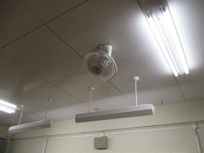 気温が低く寒い日が続いていますが、感染症対策のため、窓を開けたり扇風機を回したりするなど、換気をしっかり行いながら学校生活を過ごしています。