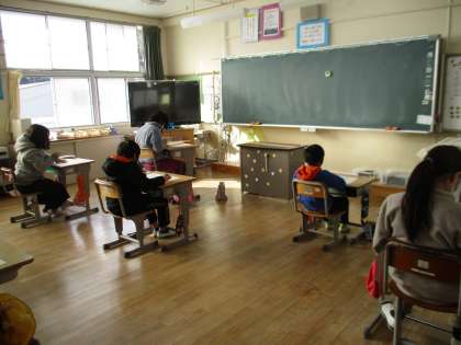 1時間目の様子です。テストに真剣に取り組んでいました。