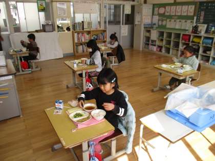 給食の様子 公開日 2022/02/02 更新日 2022/02/02 お知らせ 明日が「節分」(立春)ということで、今日の給食は「いわしのかば焼き丼、なばなのおひたし、かしわ汁、節分豆、牛乳」という節分献立でした。いわしは鬼を追い払うため、豆は邪気をはらうためと言われています。今はコロナの関係で黙って食べていますが、子どもたちはきっと心の中で「鬼は外、福は内」と唱えながら食べていたのではないでしょうか。節分豆で、鬼だけでなく新型コロナも一緒に追い払えるといいのですが。