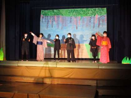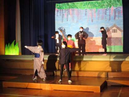 6年生の学芸会練習の様子です。衣装の着替えや道具の出し入れも、かなりスムーズになってきました。2日後の本番に向けて、順調に仕上がってきている感じです。