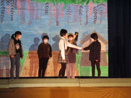 6年生の学芸会の様子です。小学校生活最後となる学芸会でしたが、全員が役になりきって細かな動きも工夫して演技したり、気持ちのこもったセリフを言ったりすることができていて、感動的な素晴らしい劇となりました。コロナ禍でマスクがはずせないなど、制約も多く大変な学芸会でしたが、最高の形で締めくくってくれました。