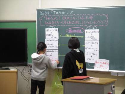 授業の様子2 公開日 2022/02/22 更新日 2022/02/22 お知らせ 5年生の道徳の授業の様子です。『すれちがい』という題材で、友達とタイミングや気持ちがすれ違った時にどうすればよいかについて話し合いました。相手を大事に思うことは分かっているけれど、いざとなったら心の余裕がなくて相手にうまく接することができない等、活発に意見が交わされました。最後は、全員が自分自信を見つめることの大切さに気付くことができました。