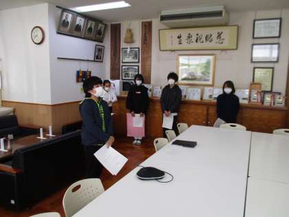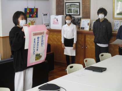 全校集会 公開日 2022/03/07 更新日 2022/03/07 お知らせ 新型コロナまん延防止等重点措置が2週間延長されたことを受け、リモートで全校集会を行いました。元気集会委員のみなさんの司会で、読書感想画や書き初め大会の表彰、御作7カ条運動のまとめ、今月の目標の発表などを行いました。また、校長からは金子みすゞさんの詩を紹介し、「みんなちがってみんないい」「あなたはあなたでいい」という話をしました。これからも、仲間の良いところを見つけ、認め合える御作っ子であってほしいと思います。