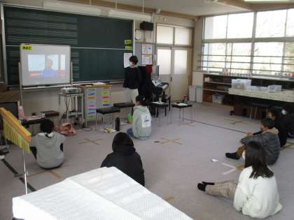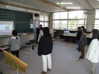 5年生の音楽の授業の様子です。動画を見ながら、口角を上げて笑顔で歌うと響きのある歌声になることを確認していました。練習を繰り返し、オペラ歌手のような響きのある声を出すことができていました。