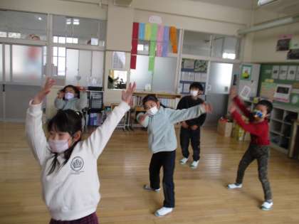 1・2年生の音楽の授業の様子です。授業始めのウォーミングアップで、リズムに合わせてダンスを踊っていました。みんなノリノリでかっこよかったです。